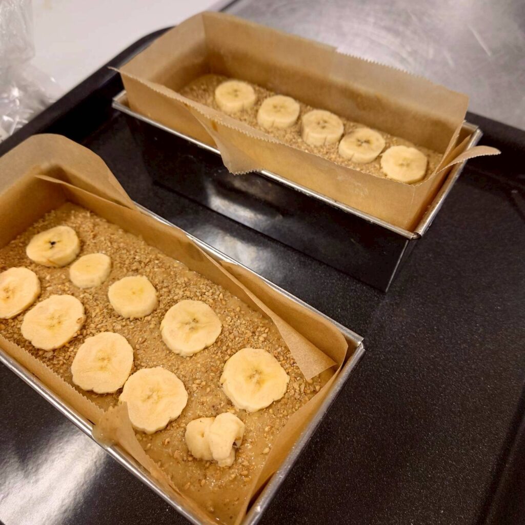 今日は会議の前にバナナセサミケーキを作るグループとお味噌を分けるグループに分かれて作業をしました。