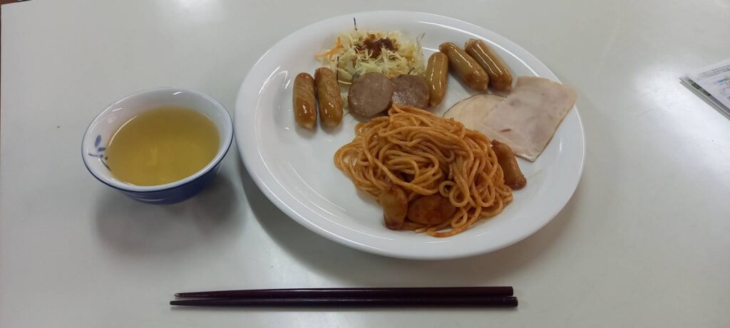 GCハム、GCソーセージの食べ比べをしました。「GC得々ウインナー(新商品)」 「GCあらびきウインナー(リニューアル)」「GCやさしいモモハムスライス」「GCレバーポークステーキ」「GCチキンハムスライス」の5種類を食べ比べました。それぞれに味の濃さや旨味の違いがあり、これまで注文したことのなかった商品が試せて良かったという声が多く聞けました。ウインナーはGCトマトケチャップとロングパスタでナポリタンにして試食をしました。また、「ジャポネソース」をキャベツミックスで試食もしました。酸味もあり醤油ベースの和風のソースでした。