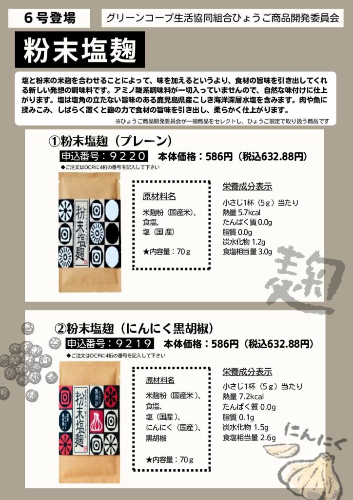 6号登場!粉末塩麹(プレーン)(にんにく黒胡椒)